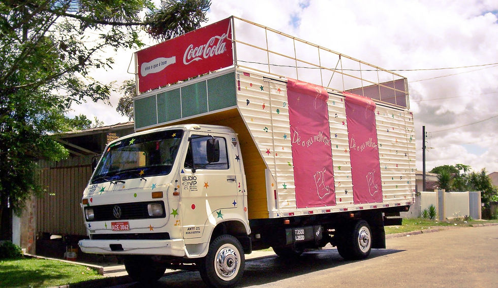 Nossos caminhões são equipados com equipamentos profissionais, garantindo assim máxima qualidade e potência, palco superior, e espaços apropriados para fixação de material publicitário.